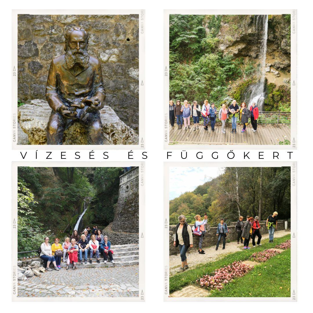 Találkahelyünkről első utunk Magyarország legmagasabb vízeséséhez és a Palotaszálló alatt elterülő Függőkertekhez vezetett. A romantikus környezet mindannyiónkat elvarázsolt.